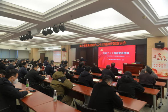 為深入學(xué)習(xí)貫徹黨的二十大精神,切實把全集團黨員干部職工的思想統(tǒng)一到黨的二十大精神上來,把力量凝聚到黨的二十大確定的各項任務(wù)上來,12月26日上午,重慶化醫(yī)集團召開黨的二十大精神專題宣講會。市委宣講團成員、重慶大學(xué)馬克思主義學(xué)院副院長、教授呂進作宣講報告,集團黨委書記、董事長段彩均主持會議并講話。